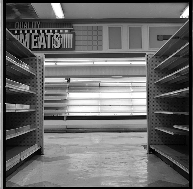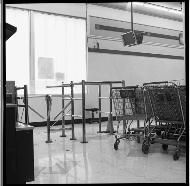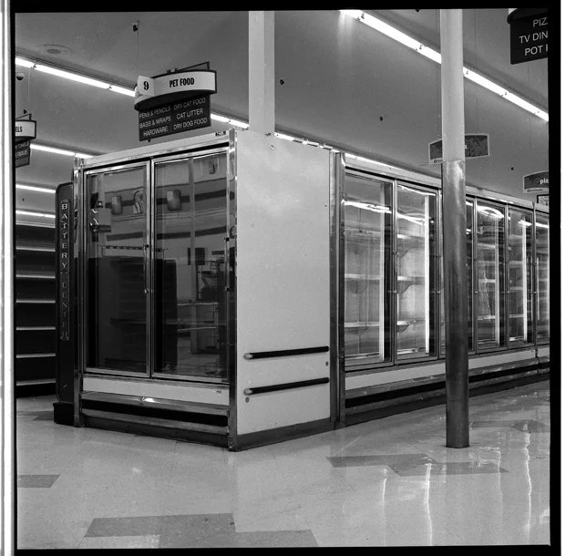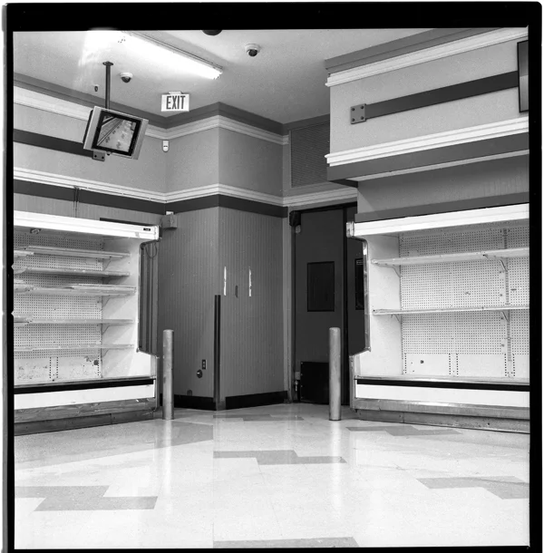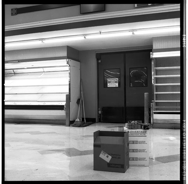 'Contra' is a collection of images that explores the transitional period that a commercial space experiences when a business moves out. While making these photographs, the lights were still on, and the outdated pop-music was still playing, complete with the occasional interruption to remind shoppers of what products were on sale.